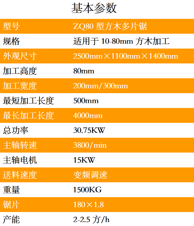 1.ZQ80型方木多片鋸采用獨立5條滾軸傳動設計,可以保證同一個平面線上,送料平穩。